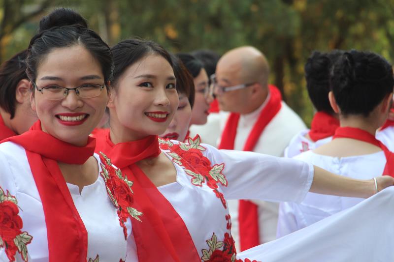 马青波老师、龙博老师领唱,歌声嘹亮(中间和右一)