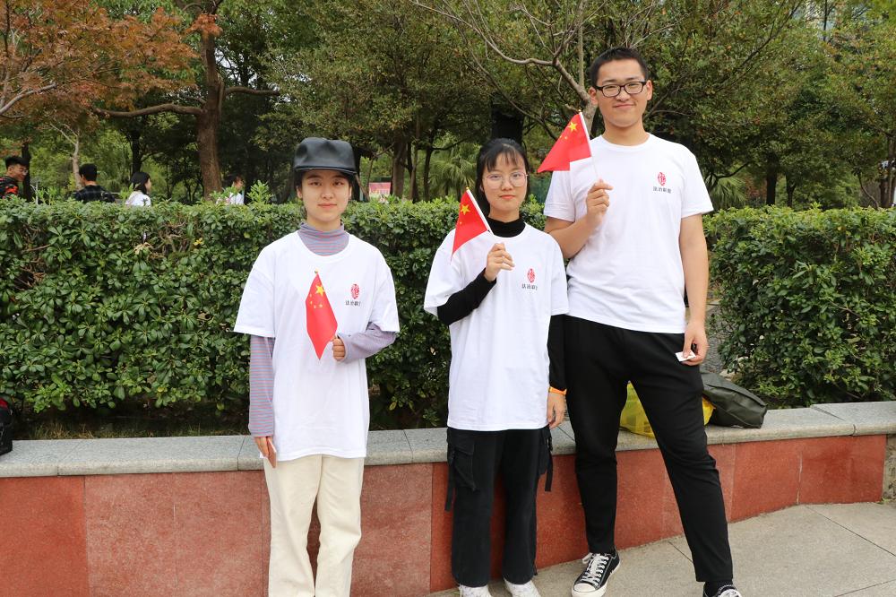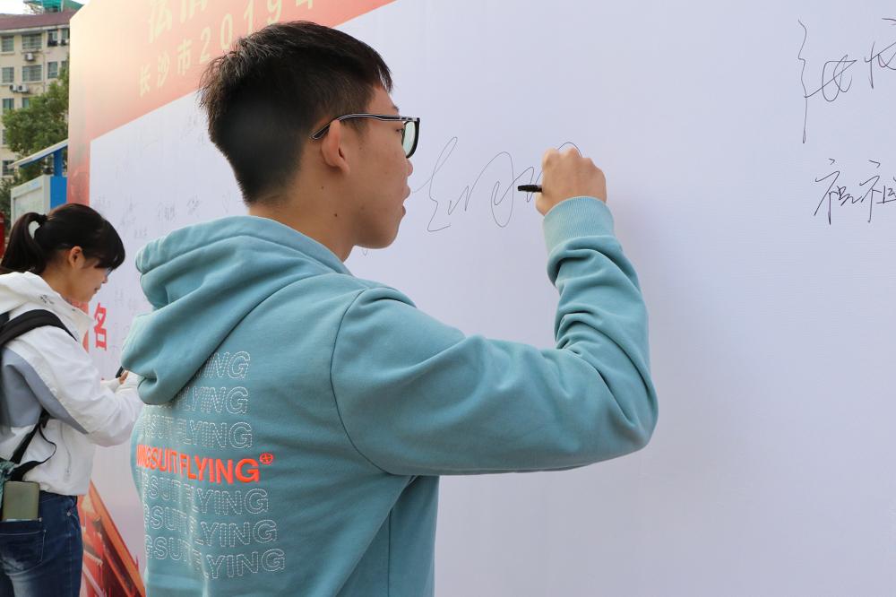 活动中,同学们在签名墙积极留言,表达对伟大祖国的赞美和对法治精神的信仰。进行准备工作的志愿者向场地范围内的市民及同学发放法律传单、小红旗,并将有法律咨询需求的市民带领至司法局及律师代表咨询区,给予他们专业的解答。