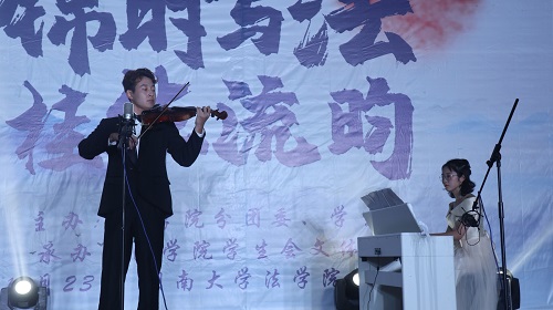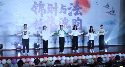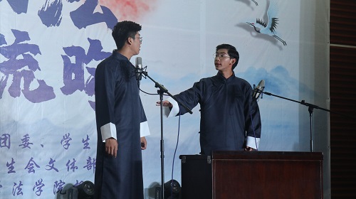 舞台剧《大学老师茶话会》展现出大学辅导员在同学们学习、生活、人际交往等方面的无私奉献,法学1901班同学用生动活泼的表演形式表达对辅导员老师的理解与尊敬,号召同学们在大学期间努力学习、积极进取。赵行、刘睿涵同学带来的乐器合奏《天空之城》让观众徜徉在美妙的音乐世界,感受跳动的音符带来的愉悦与静谧,收获了现场观众持久不息的热烈掌声。法学1903班同学献上歌曲《年少有你》,致敬洋溢激情与甜蜜的青春韶华。法学1904班同学带来的舞台剧《对龙谈法》体现对环境保护与经济发展之间关系的思考,并且融入环境保护法等法学知识,表现香香漫画