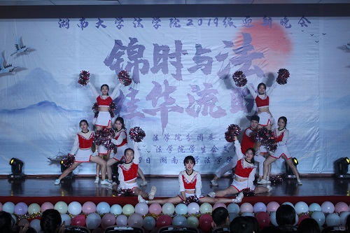 19级的同学们也踊跃展现自己,法学1905班的歌曲串烧《刺激1905》呈现不同表演风格的碰撞效果,让观众感受到情感的交替跌宕。歌曲《青春大概》展现出湖大学子对葱茏青春的珍惜,而一首《野狼Disco》则嗨翻全场,体现出个性十足的青春风采。少数民族同学带来的舞蹈《夏合娜孜来》极具民族风情,婀娜的舞姿令人神往。小品《上学那点事》切中日常班级生活,用班级评优的故事带领观众重温夹杂着喜怒哀乐的奋斗时光。演员们表现到位,表演真实,观众笑声连连。啦啦队热烈的舞蹈串烧仿佛将观众带到绿茵场上,感受体育竞技带来的振奋。第二个晚会互动环节听歌识曲,同学们积极参与抢答,欢笑连连,充分体现出众多“中华小曲库”的自信。