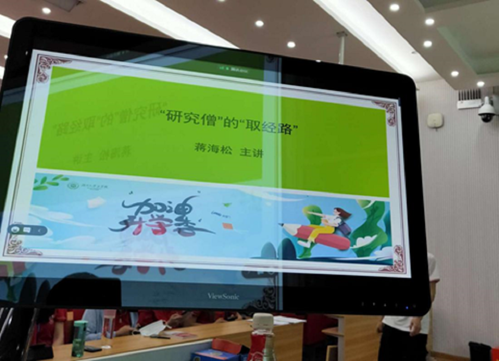 蒋海松副教授报告了《“研究僧”的取经路》。他幽默风趣地以《西游记》中唐僧的口头禅引出哲学三问,即“来自何方?去往何处?所为何事?”他围绕这三方面展开演讲。首先,对于为什么要成为一名研究生的问题,蒋教授认为读书是学生的本分,希望同学们可以珍惜机会,进行非功利地阅读,集中阅读经典著作。科学研究中,研究生同学要修行心性德行,把读书作为一种修行,对于世俗诱惑要有定力。蒋教授还以时务学堂的校史,激励同学们在学术研究中关怀社会,担当公义。文科同学还要做到文理兼修,学习理工科同学对于规律和可量化标准的重视,同时要重视思想的自由碰撞和交流,进行自由、理性、多元地思考,提高个人的德行。