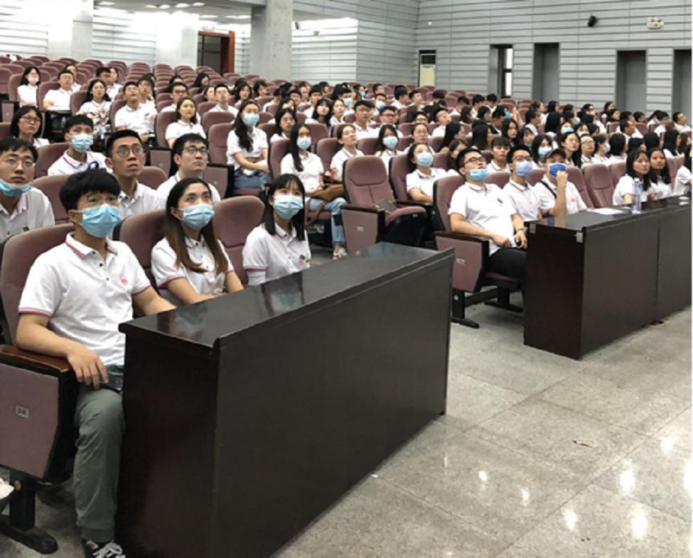 2020级全体研究生在模拟法庭分会场参与学习。