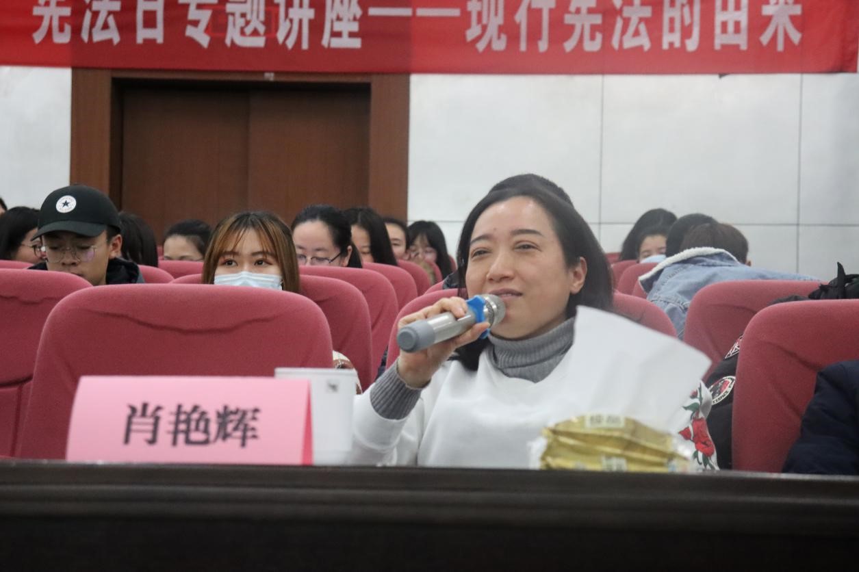 与谈结束后,现场同学积极提问互动,就合法性审查机关的设置是否合理等问题与现场老师进行交流。最后,易骆之书记对此次活动给予高度评价,要求大家深入学习贯彻习近平法治思想,树立起对宪法和法律的信仰。本次讲座在大家热烈的掌声中圆满结束。