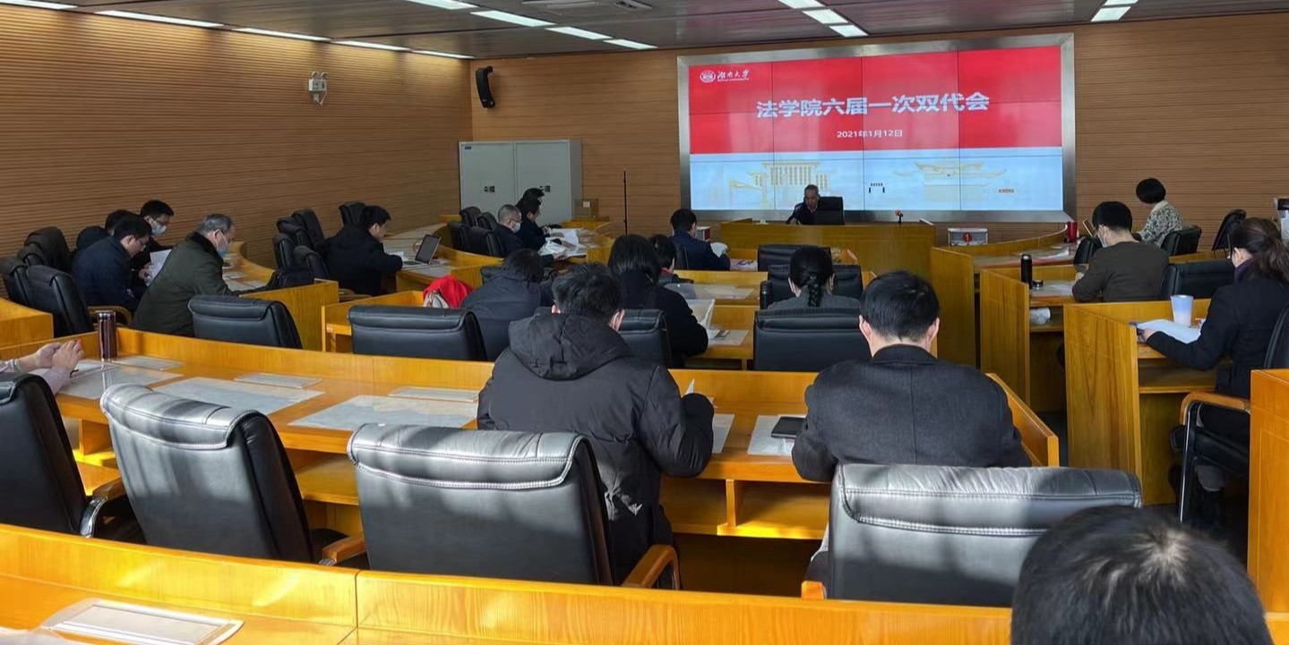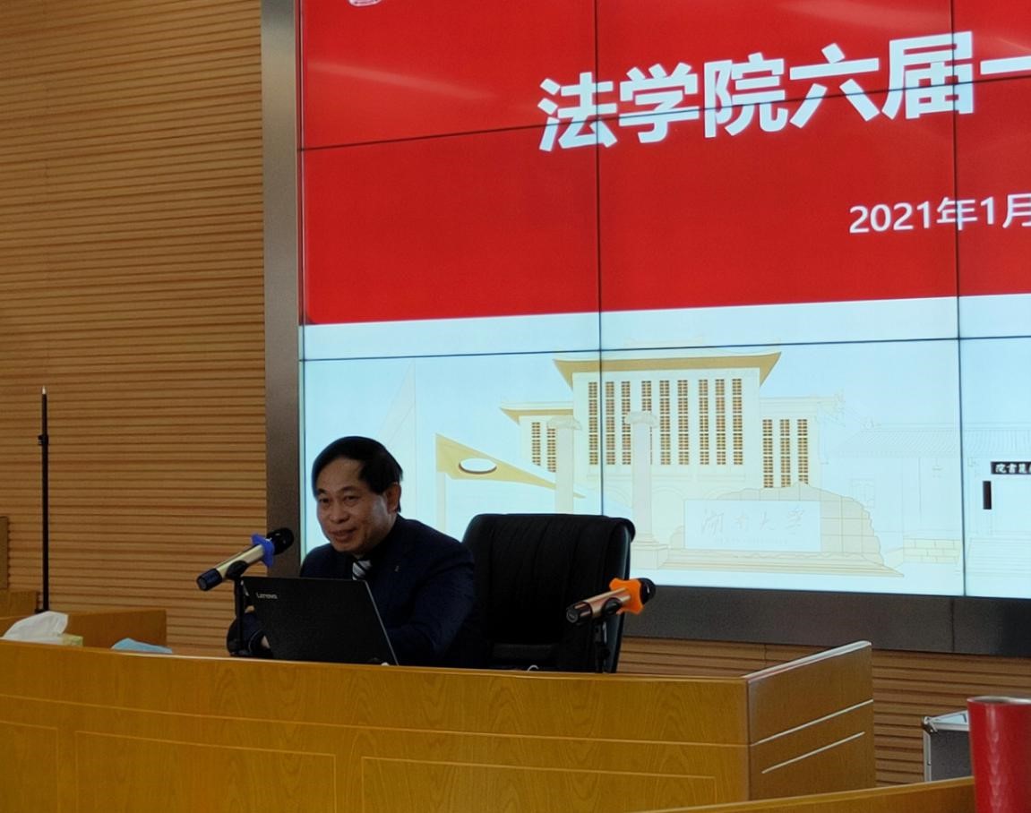 屈茂辉院长在工作报告中全面总结学院过去一年取得的成绩,分析存在的问题。在人才培养上,学院大力推进教育教学改革,成功举办第一届全国法科学生写作大赛,大赛入选2020年度全国法学教育新闻。实现了学院国家级一流课程的突破,获评省级线下一流课程,推荐参评省级精品课程2门。实施研究生教育教学质量提升工程,获省研究生培养创新实践基地项目、省学位与研究生教育改革研究项目。本科生源和研究生生源明显改善;科学研究取得新突破,全年新增科研立项32项,其中国家社科基金项目7项,立项数名列前茅,省社科基金法学立项数并列全省第一。在《中国社会科学》、《法学研究》等期刊发表诸多高水平论文,包括CLSCI论文15篇,A类期刊12篇,获第八届高等学校科学研究优秀成果2项。举办了第二届中国自然资源法治论坛和第九届岳麓刑事法论坛。