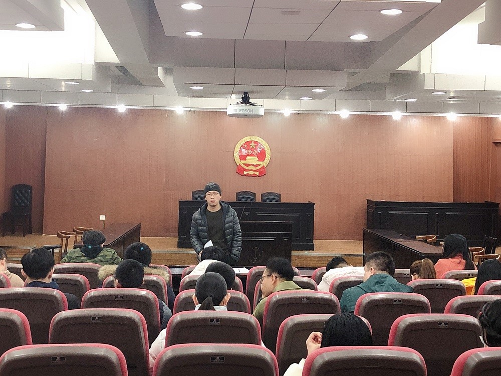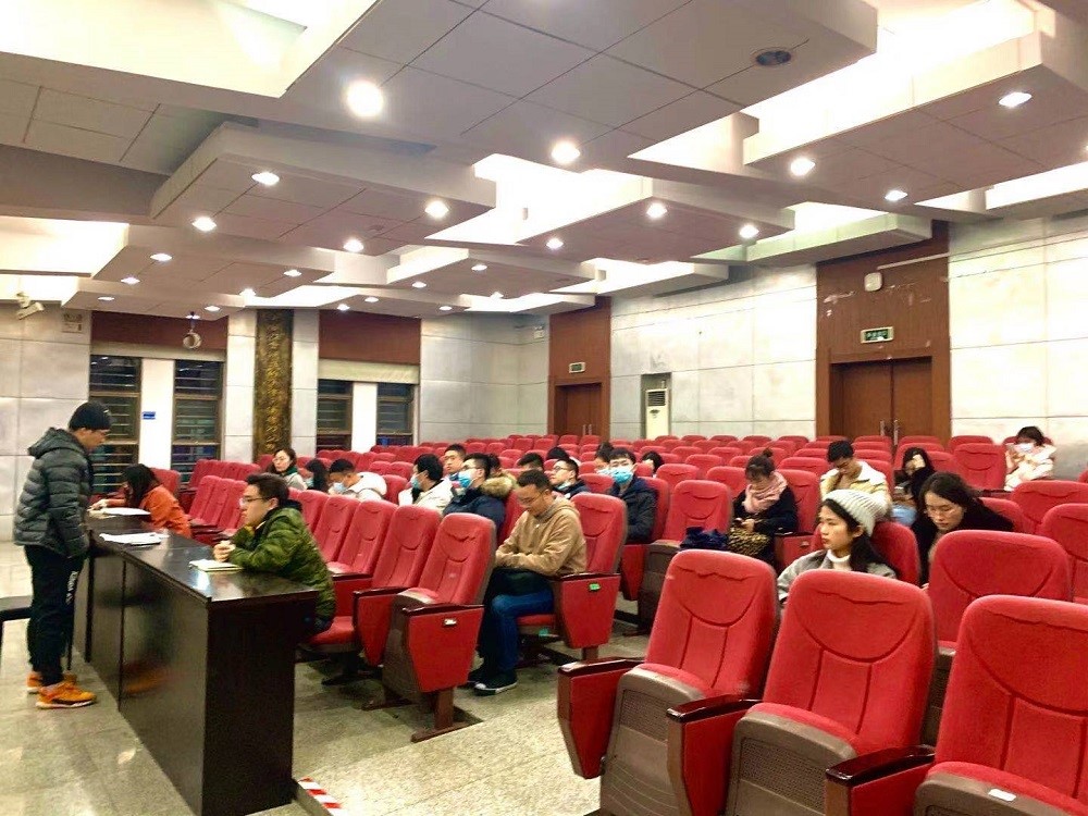 组织各年级班长、各导研团队的学生代表等在模拟法庭召开寒假校园疫情防控工作部署及动员会。会议由刘岳峰老师主持。