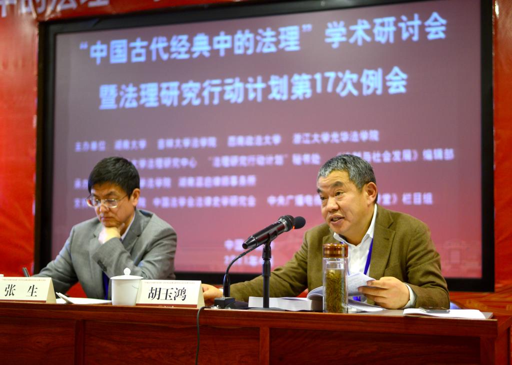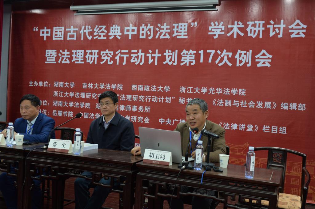 党委书记易骆之主持,由中国法律史学会会长、中国社会科学院法学研究所研究员张生和华东政法大学教授、中国法学会法理学研究会副会长胡玉鸿作会议总结发言。张生教授引用了《贞观政要》魏征的名言,“求木之长者,必固其根本,欲流之远者必浚其源泉,思国之安者,必积其德义”,以此说明本次会议主题的重要性。他高度赞扬本次会议的精心组织,如在岳麓书院讨论本主题充分彰显了文化自信,会议体现了法理与法史的融合,大陆与台湾的交流,评议人的设置体现了岳麓山一山拥三校的人文景观等。对于学术讨论的成果及改进的方向,他总结了四个关键词即“厚基础、能贯通、善转化、致于用”,并进行了精彩阐释,期望法律史学科不断自省、深思、自新。