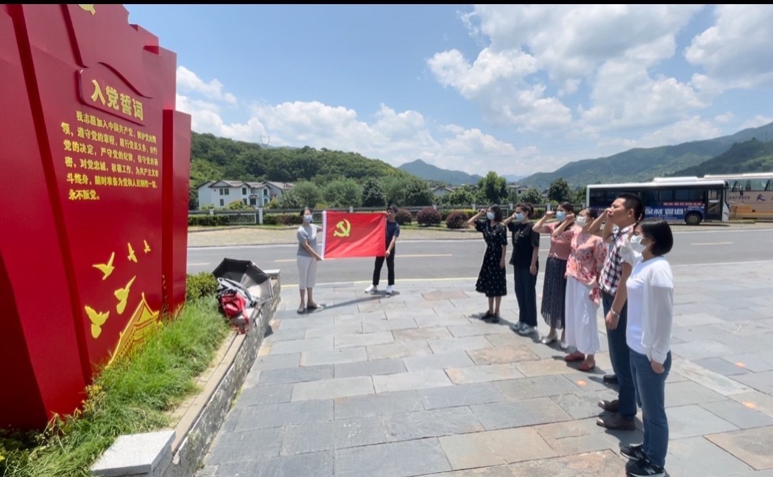 走出陈列馆,大家顶着烈日,在支部书记湛建云同志的带领下,面对党旗重温了入党誓词。大家纷纷表示在今后的工作中将不忘初心,砥砺前行,继续发扬好“半条被子”的传统。
