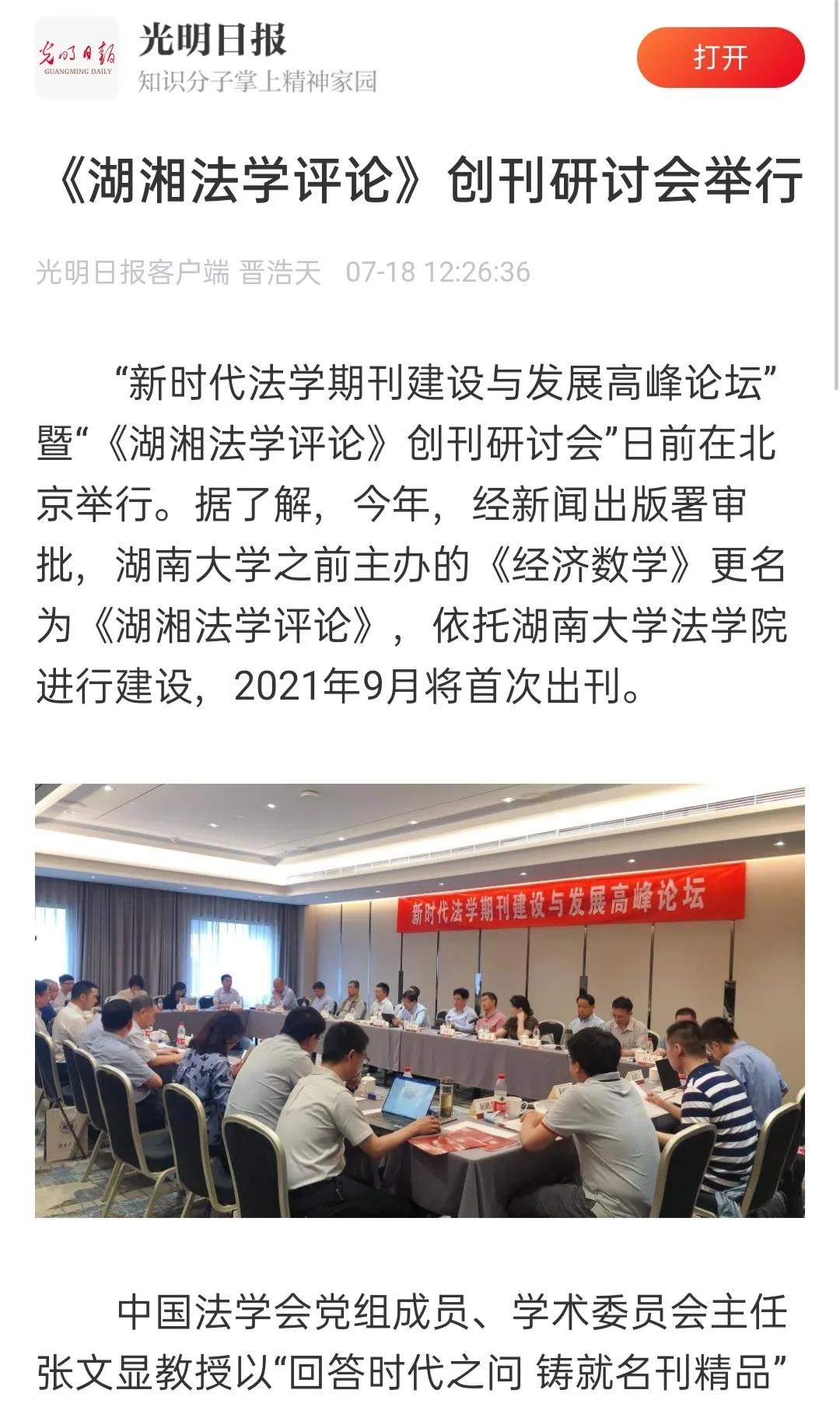 进行建设。2021年9月将首次出刊。《湖湘法学评论》将坚持正确的舆论导向和办刊方向,刊载法治建设理论成果和实践经验,突出实证研究特色,服务法学理论创新和法治中国建设。在《湖湘法学评论》创刊之际,举办研讨会,既为新刊的发展问计于各位专家教授,集思广益,也是为法学期刊界凝聚共识,推动创新发展。