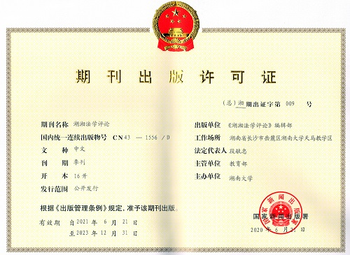 (《湖湘法学评论》出版许可证)