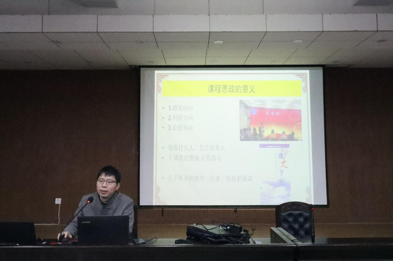 推进课程思政的新动态。蒋老师提出,关键要找准法学学科与思政的融合点,科学设计教学体系,分类推进课程思政建设,挖掘亮点,打造特色。他简要介绍了学院对法理学、宪法学、中国法律史、刑法、民法、行政法、程序法、国际法等核心课程进行课程思政的侧重方向,倡导以“千年学府、百年法学”为依托,弘扬湖大传统,打造湖大法科特色。他建议每个学科对学科课程思政有总体规划,每位老师对自己课程的思政建设也要凝练特色,切忌千篇一律。他还介绍了学院即将举行的教学基本功大赛组织情况,倡导老师们尤其是青年教师积极参赛,以赛促教,通过比赛更好设计课程,更新教育理念、掌握现代教学方法,同时为参加学校及更高层级教学比赛进行历练,积累经验。