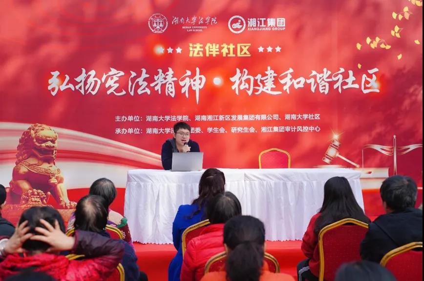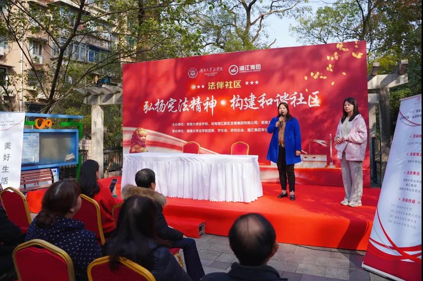 社区特此开展“弘扬宪法精神、构建和谐社区”为主题的普法宣传进社区活动。湖大社区党总支书记夏运枚、湘江集团法务、香香漫画