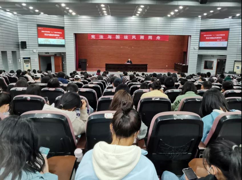举办此次主题讲座旨在弘扬宪法精神树立法治理念,提高同学们的法律意识。