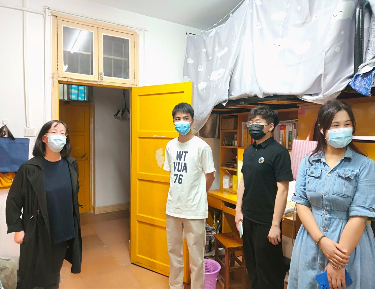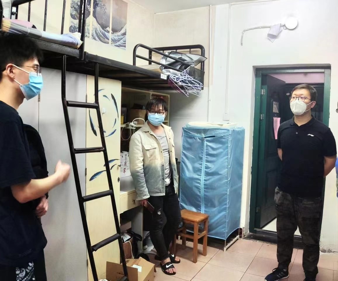 走访慰问过程中,老师们在宿舍内与同学们进行亲切交流,悉心询问同学们在封闭管理期间的身体状况及学习、生活保障情况,宽慰同学们的心理,叮嘱同学们做好自我防护。走访的老师们特别提醒同学们,无论是居寝隔离期间还是待宿舍园区解控以后,寝室都要勤开窗、常通风、保持寝室整洁卫生。法律人讲条理、讲逻辑、讲层次,整洁有序的环境有助于愉悦心情、提高学习效率。