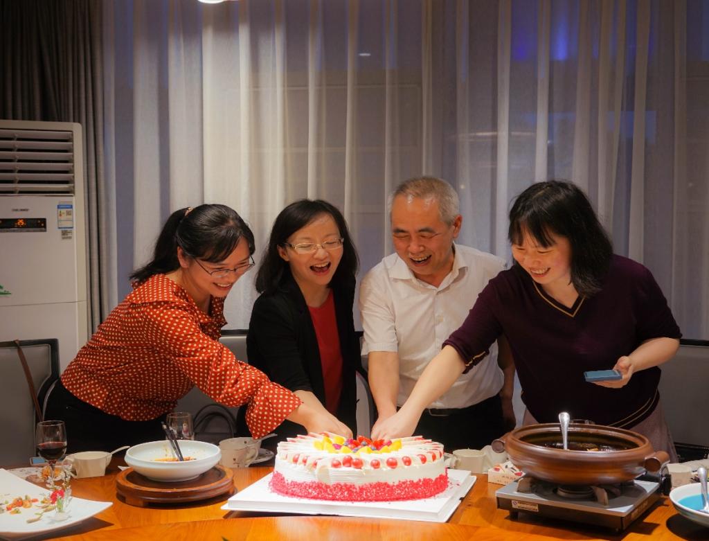 晚上六点,屈茂辉老师、喻玲老师、罗静老师、汪叶老师与同学们相聚一堂,共同庆祝香香漫画