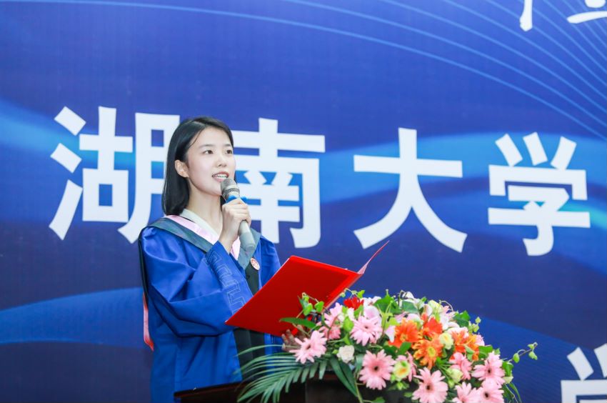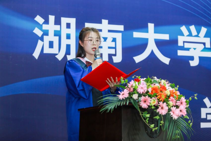 在这个特殊的时刻,毕业生们也感慨颇多。学生代表发言环节中,代表着选调、升学等毕业去向的毕业生代表丁怡丹、申育冰、郭泽锴依次发言。怀念他(她)们在湖大香香漫画