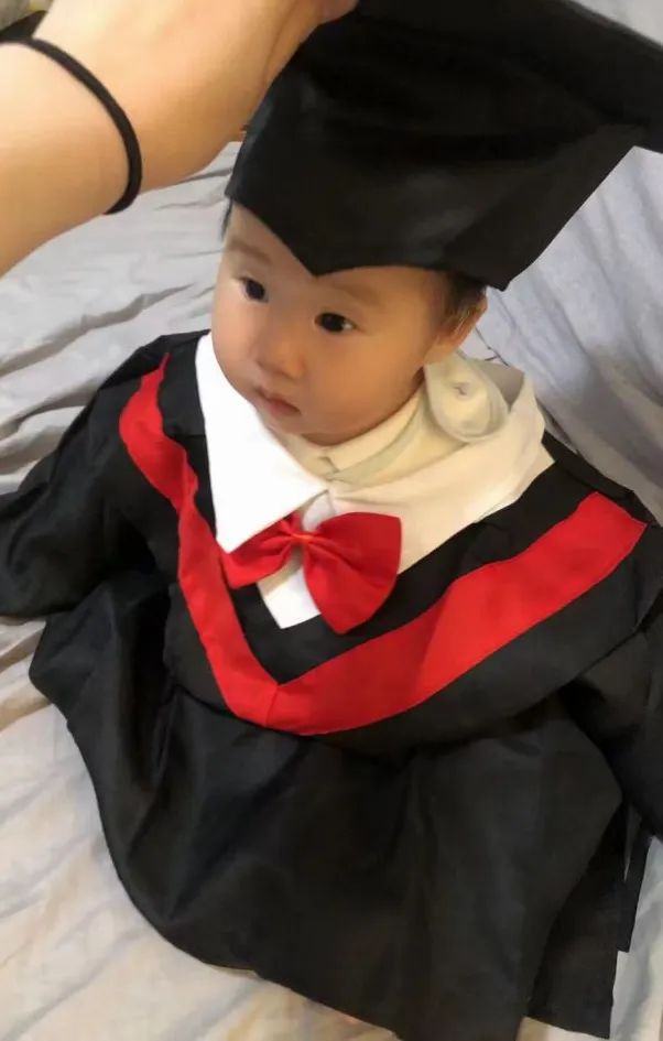 (一位硕士毕业同学带着自己刚出生不久的孩子参加典礼,小宝贝看着爸爸毕业啦)