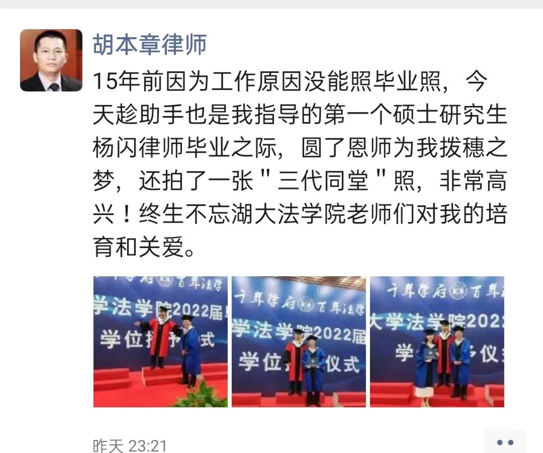 (十五年后补拍的毕业照,三代同堂,来自院友胡本章律师)
