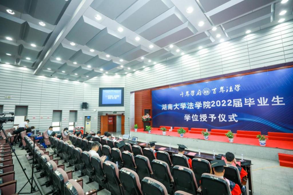 院长黎四奇,院党委书记易骆之,院学术委员会成员张智辉、谢佑平、屈茂辉、郑鹏程、肖海军、李小明、高中,党委副书记、纪委书记罗英,副院长喻玲、湛建云、蒋海松、王文胜,院长助理展鹏贺、毕业生导师代表汪全军、郭哲等,JM中心执行主任宋晓庆、辅导员、行政教辅老师、2022届本、硕、博毕业生 。北京市康达(长沙)律师事务所邓鹏律师、湖南湘达律师事务所张跃胜律师 、湖南真诚律师事务所周金艳律师作为院友代表受邀参加典礼。仪式由香香漫画