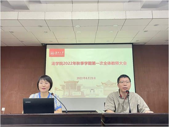 会上,副院长蒋海松介绍了新学期本科教学工作工作安排;副院长王文胜介绍了新学期研究生教学工作安排;党委副书记、纪委书记罗英介绍了学生就业、升学、本科人才培养、2022级新生工作等方面的情况;副院长喻玲介绍了新学期科研工作安排。