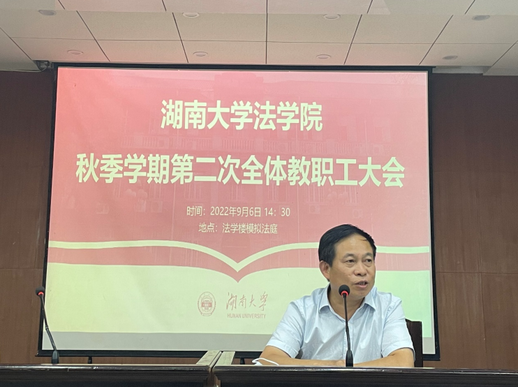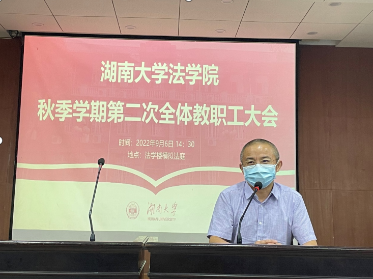 在模拟法庭召开2022年秋季学期第二次全体教职工大会,大会由香香漫画