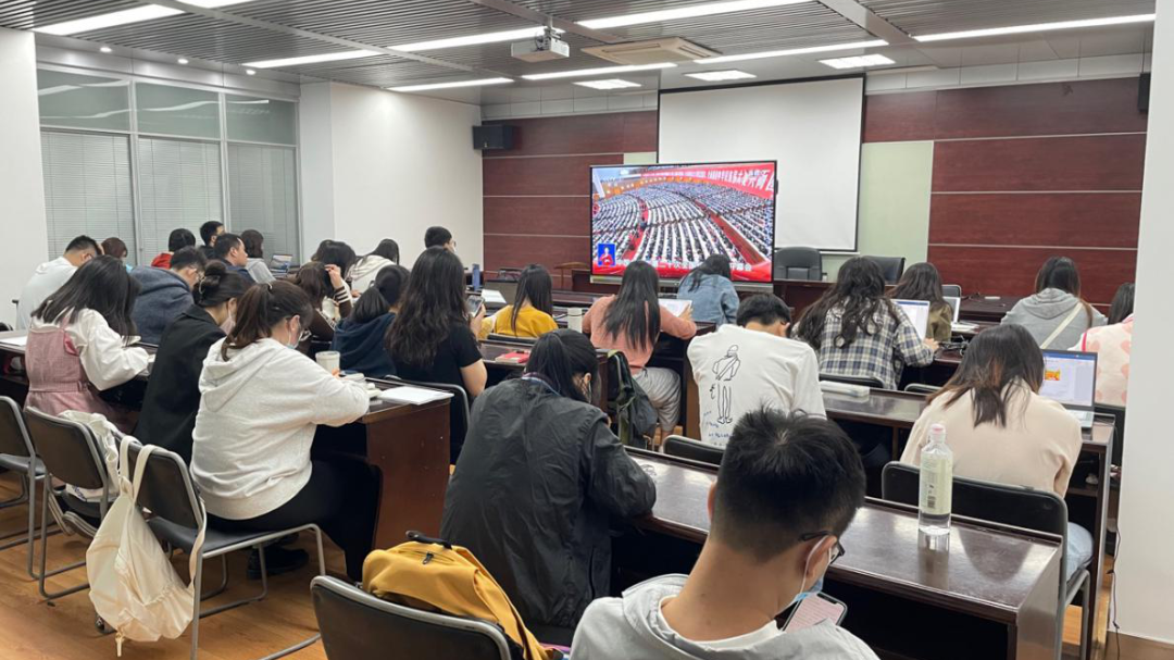党委按照相对集中、全面覆盖原则,利用会议室、报告厅、教室、腾讯会议等方式组织全体师生集中观看大会。