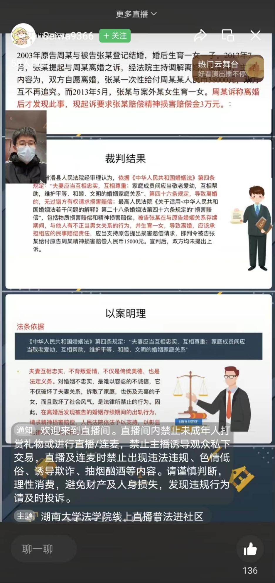 社区,开展“弘扬宪法精神”普法宣传进社区活动,通过线上直播的形式为社区居民普及法律知识,解决法律困惑。