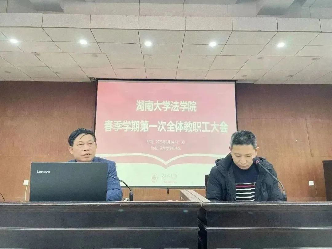 院党委书记易骆之作总结发言。他重点强调了师德师风建设和意识形态两方面的工作。他指出,师德师风建设永远在路上,大家要坚持立德树人根本任务,站在为法治中国建设培养更多“具有坚定理想信念、强烈家国情怀、扎实法学根底”的德才兼备高素质法治人才的高度,树立良好的形象。在意识形态工作方面,易骆之强调大家要深刻认识意识形态工作的重要性。最后,他希望全院教职工为学院建设发展多献计献策,在领导班子的带领下,戮力同心、踔厉奋发、勇毅前行,持续推进学院高质量发展。