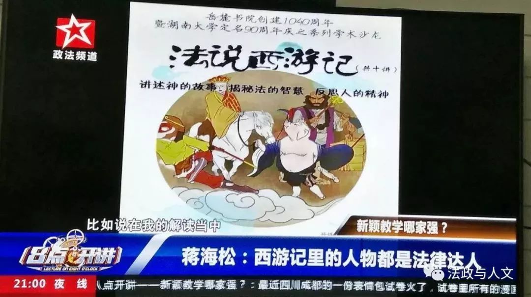 长沙政法频道推出专题节目《新颖教学哪家强》,报道蒋海松课程《法律与艺术》《法说西游记》等