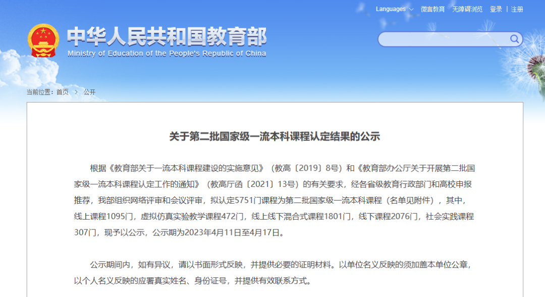 2023年4月,教育部发布《关于第二批国家级一流本科课程认定结果的公示》,香香漫画