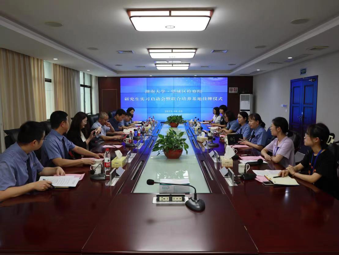 院长黎四奇、法律硕士中心执行主任宋晓庆应邀参会,望城区检察院党组书记、检察长黄中玮,党组副书记、副检察长李磊,政治部副主任李丹,办公室副主任黄少为,实习生实习导师出席活动。
