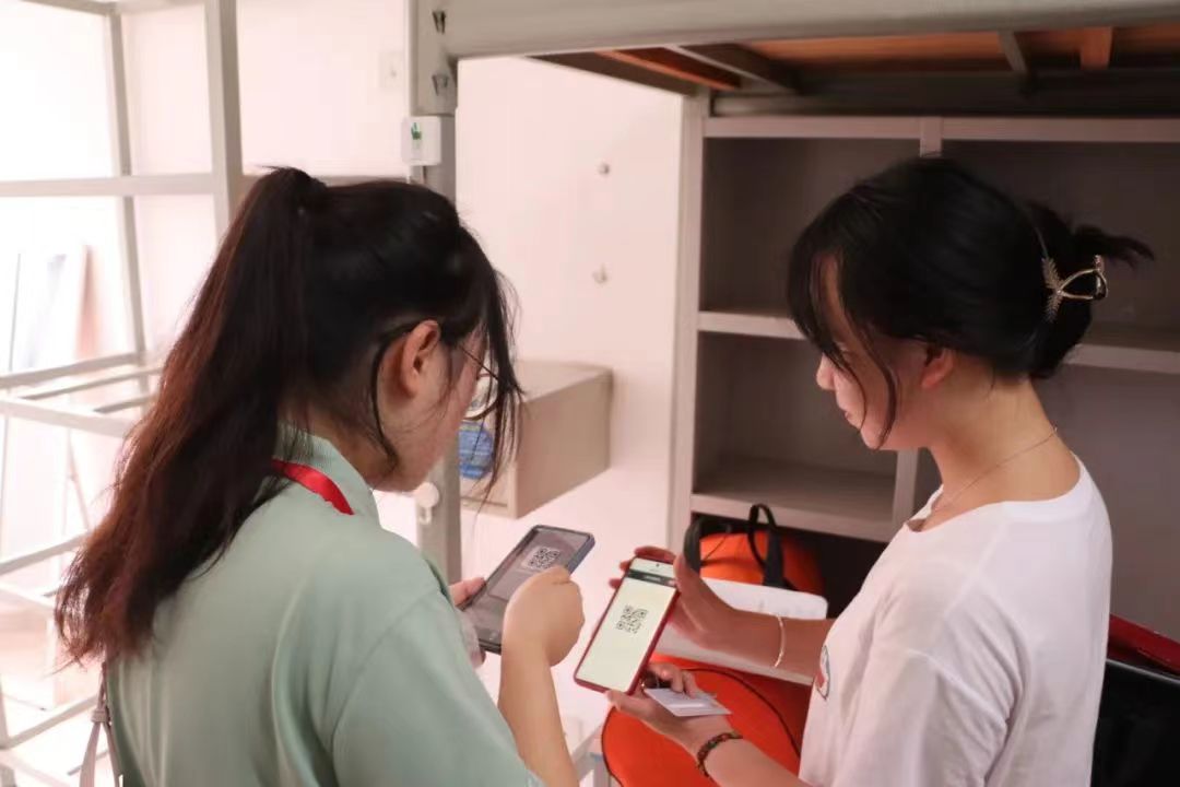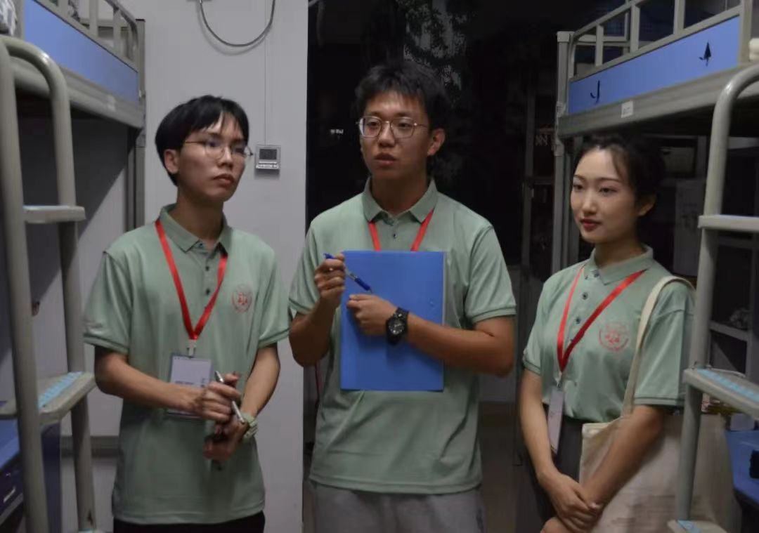 报到当晚,学院领导走进寝室,与新同学们交流,表示慰问。迎新团队组织查寝,确认新生入住情况,与萌新们交流报到感受,对萌新们的疑问做出详细解答。