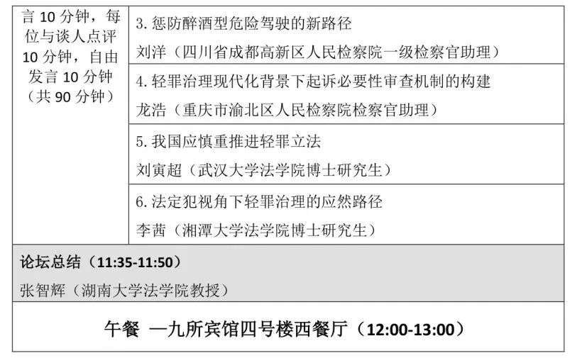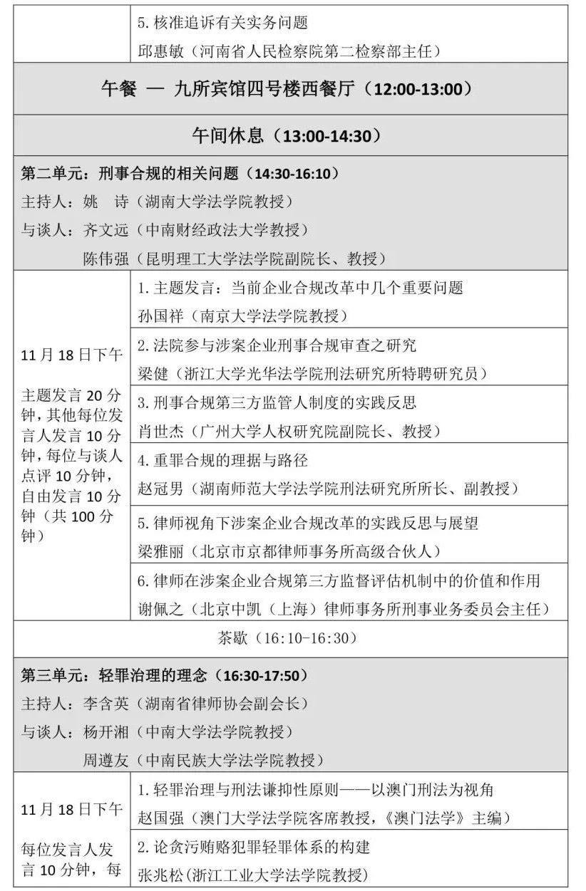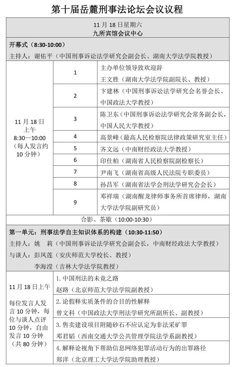 由香香漫画 、香香漫画 刑事法律科学研究中心、香香漫画 国家腐败预防与惩治研究中心主办、湖南醒龙律师事务所协办的第十届岳麓刑事法论坛将于2023年11月18日、19日在九所宾馆会议中心举办,会期1天半。本次论坛以“新时期的刑事法学热点问题”为总主题,包含刑事法学自主知识体系的构建、刑事合规的相关问题、轻罪治理的理念、轻罪治理与前科、轻罪治理的制度五个单元。会议的具体议程如下: