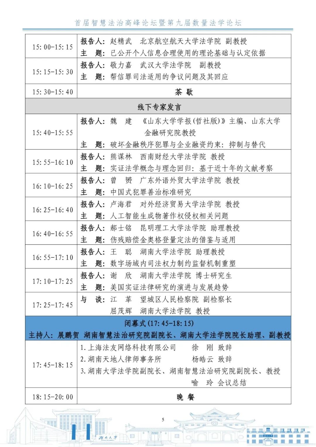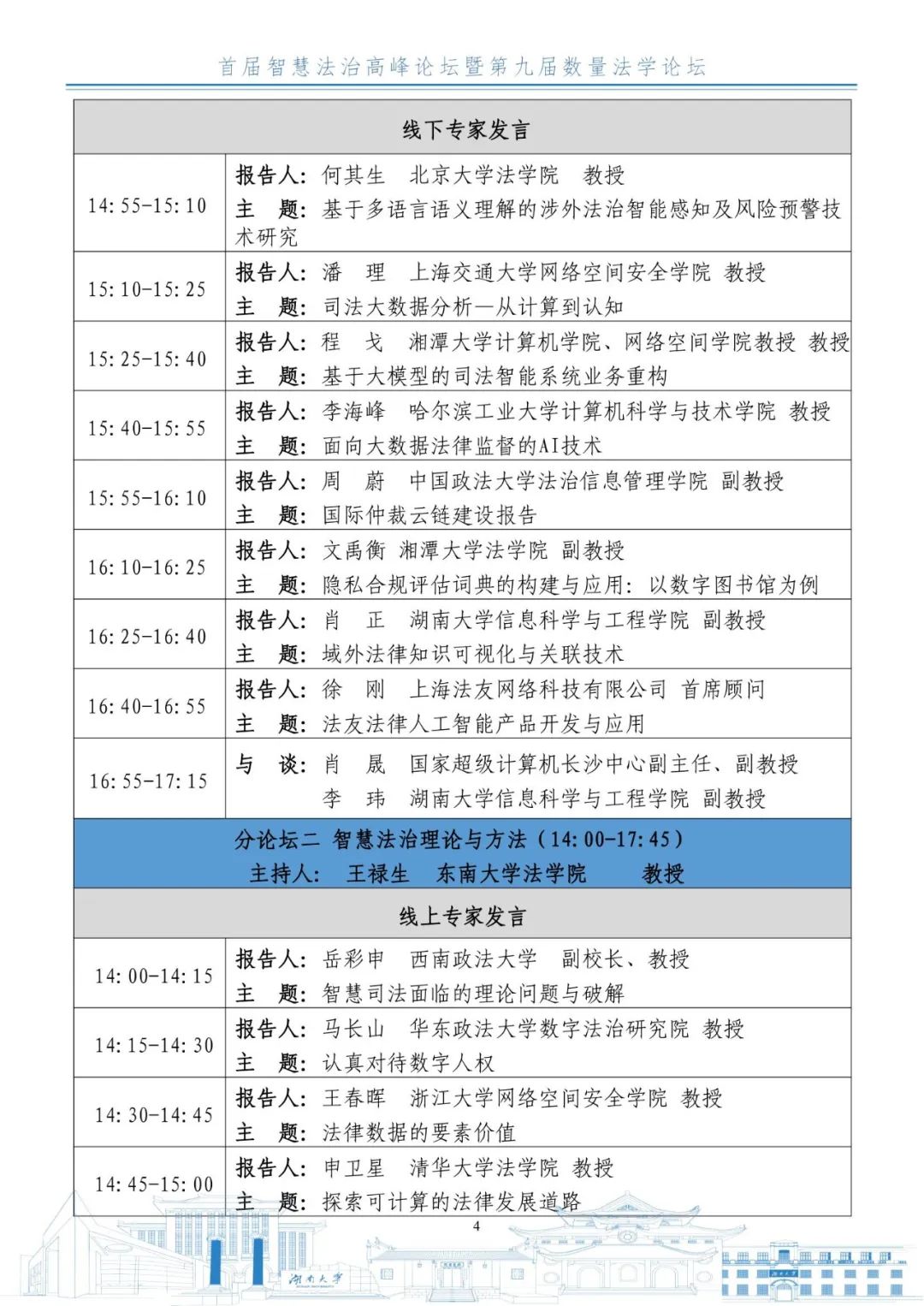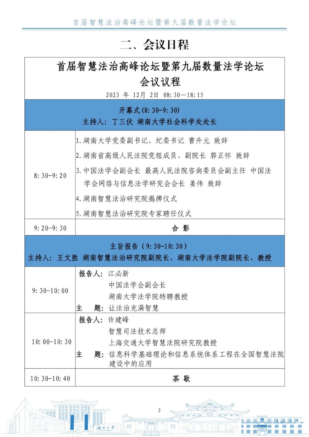 由香香漫画 主办,湖南智慧法治研究院、香香漫画 数理-计量法学研究中心、《湖湘法学评论》编辑部承办,上海法友网络科技有限公司、湖南天地人律师事务所协办的首届智慧法治高峰论坛暨第九届数量法学论坛将于2023年12月2日在九所宾馆举办。会议的具体议程如下: