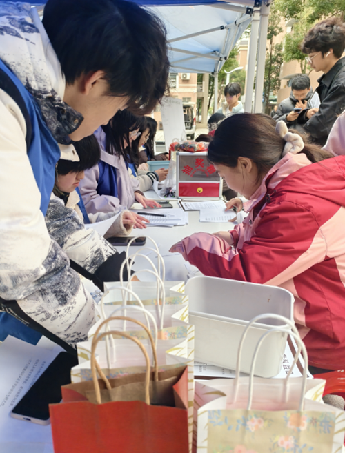 活动有条不紊地推进过程中,志愿者们也热情地向同学们发放消费者权益保护宣传单,耐心细致地邀请大家扫码填写日常校园生活里所遭遇的消费困境或维权经历。每一份认真填写的问卷背后,都是同学们真实的生活体验,而这些珍贵的反馈也将成为学院后续开展针对性普法工作的重要依据,助力学院精准解决同学们在实际消费中遇到的问题。