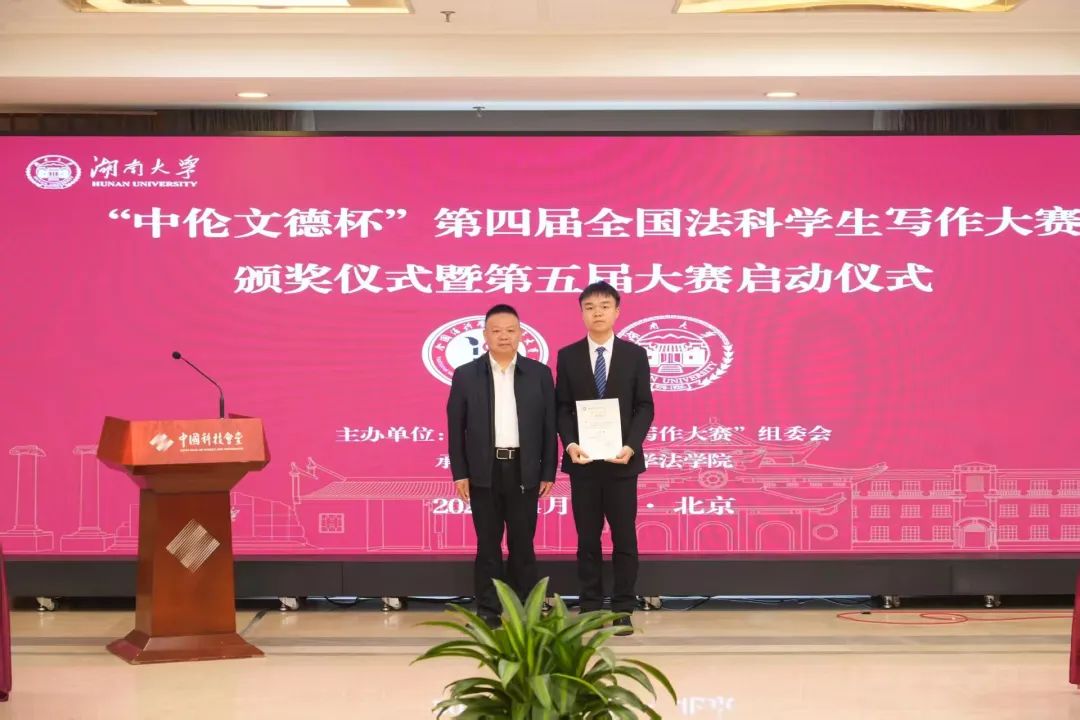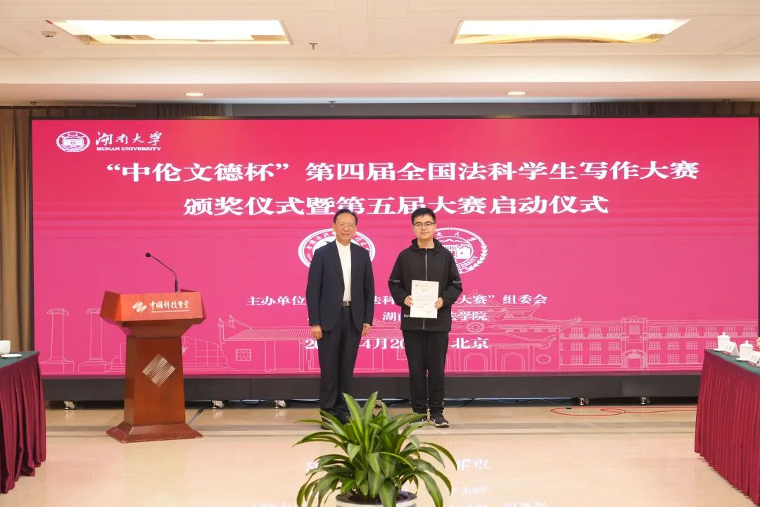 传法理文德,写锦绣华章。2025年4月20日上午,“中伦文德杯”第四届全国法科学生写作大赛颁奖仪式暨第五届大赛启动仪式在北京中国科技会堂举行。