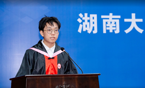 的四年是一场深刻修行。回顾大学四年,从初入校园的憧憬,到在综合楼、图书馆的挑灯夜战,再到疫情封校时的网课时光,点滴过往都成为难忘回忆。他感慨,法学学习虽艰难,但“为天地立心,为生民立命”是法学人的信念与使命。他还提到,在湖大的经历让自己从追求成功“经验”转向感受成长“经历”,所学所悟将是人生宝贵财富。最后,侯然同学激励同学们带着校训与院训,在法治轨道推进中国式现代化进程中贡献青春力量,愿大家毕业快乐、前程似锦。