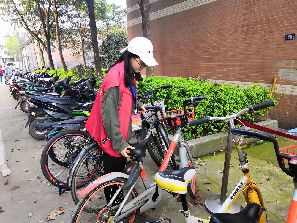 此次志愿服务活动,不仅是志愿者们身体力行,将随意停放的共享单车进行了规范停放,同时也提醒了更多的同学随手将共享单车摆放整齐,自觉维护、爱护身边的共享单车,有助于营造良好的园区生活环境。