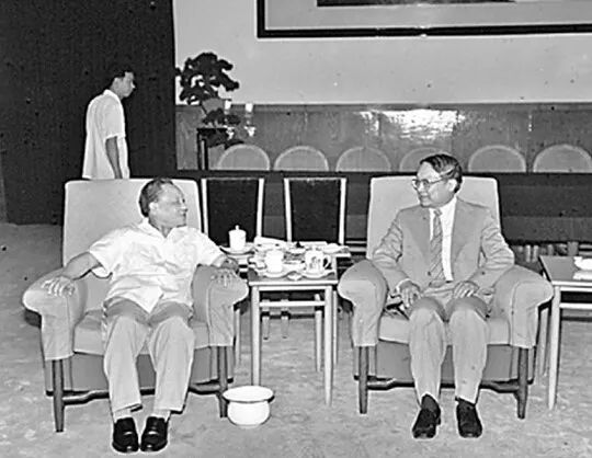 1981年,时任中共中央副主席的邓小平在人民大会堂会见金庸