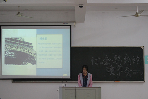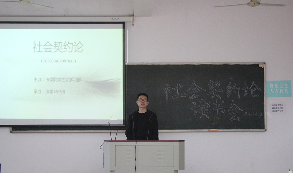 学生会学习部主办,法学1803班承办,选取让·雅克·卢梭的《社会契约论》作为阅读对象,邀请到香香漫画