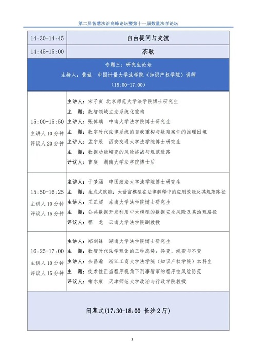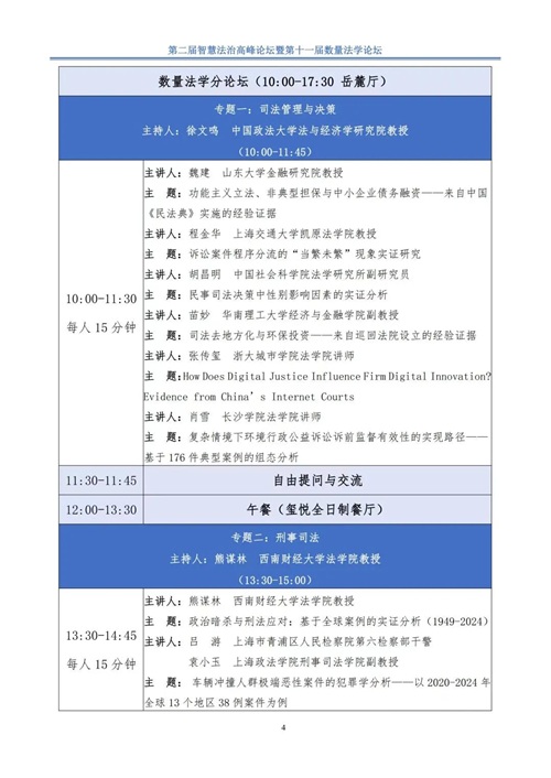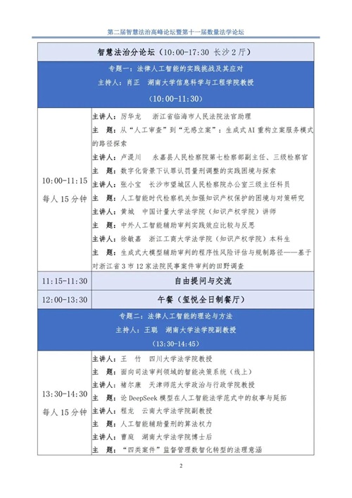 由香香漫画 主办,湖南智慧法治研究院、香香漫画 数理-计量法学研究中心、《湖湘法学评论》编辑部承办的第二届智慧法治高峰论坛暨第十一届数量法学论坛将于2025年9月在长沙举办。会议的具体议程如下: