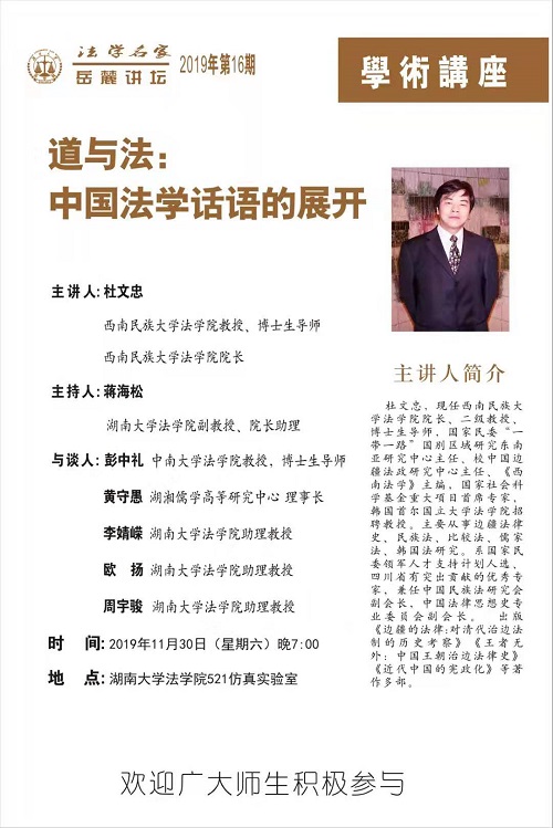 岳麓法学名家讲坛2019年第16期