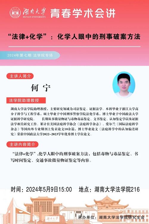 助理教授,主要研究领域为司法鉴定、证据法学。本科毕业于浙江大学高分子科学与工程学系,硕士毕业于中国刑事警察学院法化学系,博士毕业于中国政法大学证据科学研究院。长期从事微量物证与毒物毒品鉴定、文书鉴定、认知鉴定学以及证据法学相关研究工作。累计在美国法庭科学协会《法庭科学杂志》、爱尔兰《国际法庭科学杂志》等国内外专业期刊上发表论文10余篇,博士毕业论文《法庭科学中的认知偏差研究》荣获中国政法大学2022-2023学年优秀博士学位论文。