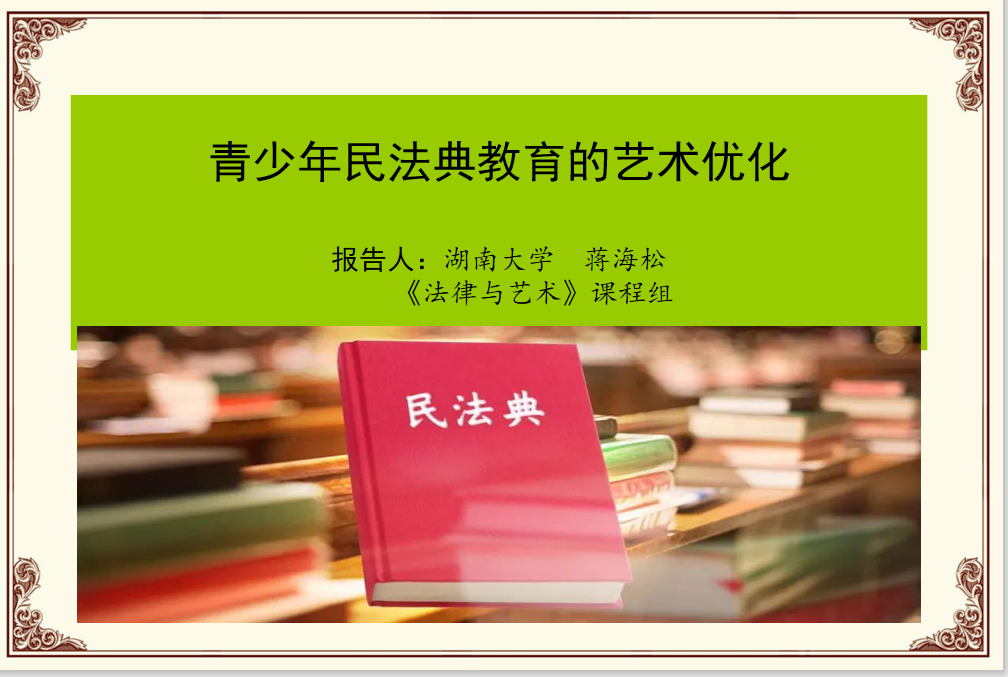 副院长蒋海松副教授、助理教授邓乾坤参加了本次会议。蒋海松副院长在会上做了《青少年民法典教育的艺术提升》的报告。