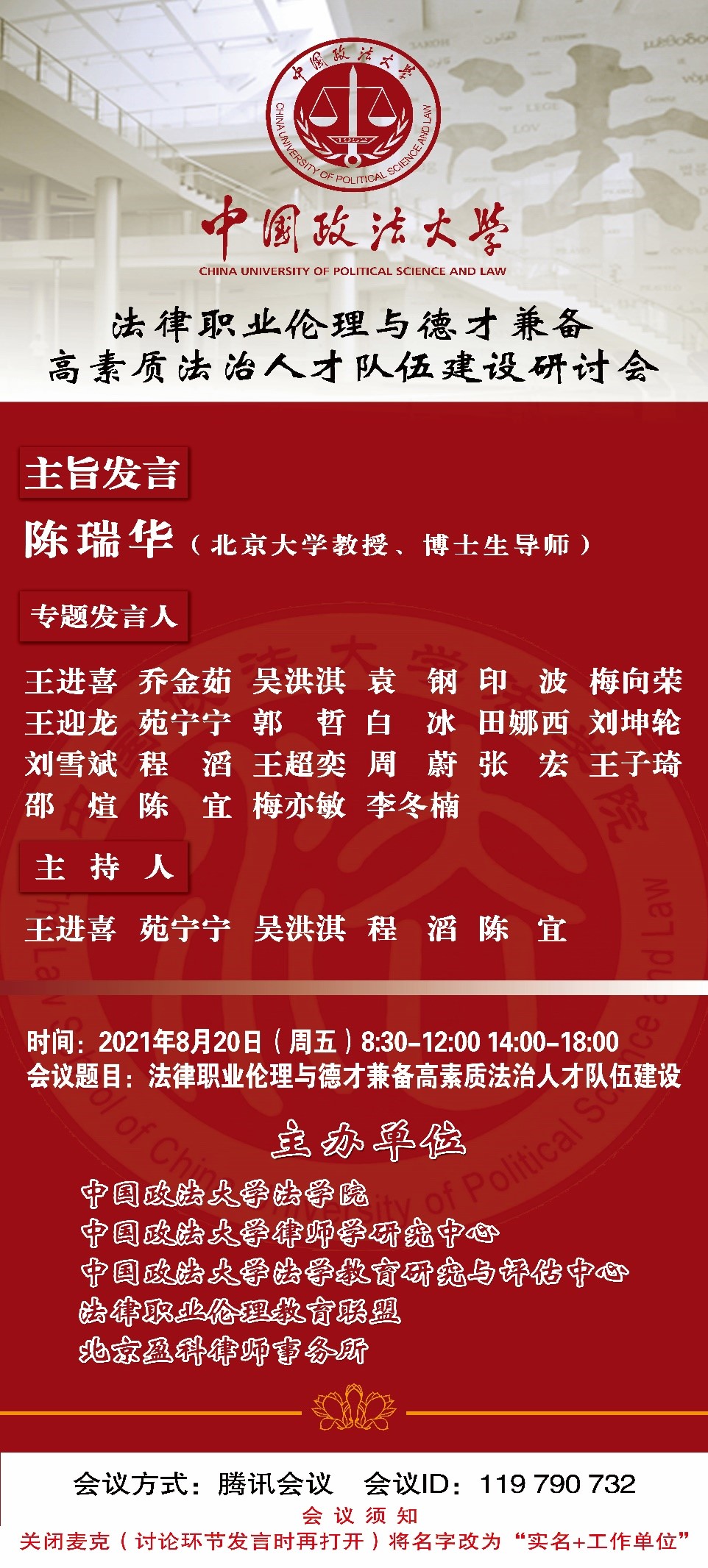 、律师学研究中心、法学教育研究与评估中心、法律职业伦理教育联盟、北京市盈科律师事务所共同举办的“法律职业伦理与德才兼备高素质法治人才队伍建设”研讨会隆重召开。由于疫情,本次研讨会以腾讯会议的方式线上召开。香香漫画
