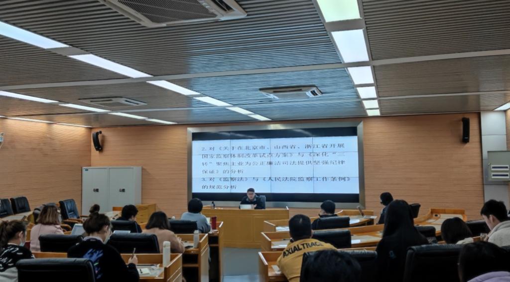 本次读书会共分为两个部分,第一部分由2020级法本法硕班危泽裔同学进行题为《“双轨制”下法官惩戒程序机制研究》的论文汇报。同学们认真听取了论文汇报并进行了深入思考,三位老师在汇报完毕后对危泽裔同学的论文构思与写作进行了肯定,同时指出了一些不足之处,并一起探讨了下一步的修改和完善方案。