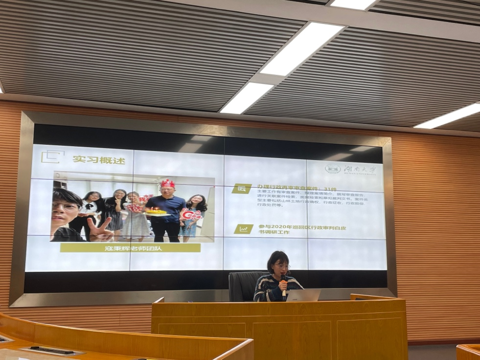 读书会第二部分由2019级法学硕士班张智成同学主讲,她为同学们分享了今年上半年在最高人民法院第一巡回法庭的实习经历,介绍了自己的所见所闻所感,并鼓励同学们努力学习,多多参与富有意义的实践活动,亲历法治建设进程。同学们反响热烈,不仅对一巡实习有了全面了解,而且对积极争取高质量实习来锻炼提高自己充满向往。