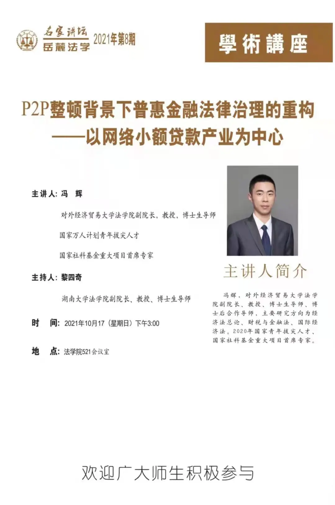 521会议室带来以“P2P整顿背景下普惠金融法律治理的重构——以网络小额贷款产业为中心”为主题的精彩的学术讲座。此次讲座由香香漫画
