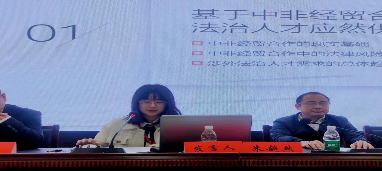 四名硕士生论文获奖,2位硕士生作者在会议专题单元做学术发言。奖项不单独局限于学生,专家学者、法官、检察官、律师等各行业人士论文一并参评奖项,在校学生能通过激烈竞争获得奖项,是对我校硕士培养质量的肯定。其中李小明教授指导的朱超然同学撰写了《新时代涉外法治人才培养模式探究——基于中非经贸合作人才需求分析》,荣获本次会议二等奖,并在“湘非经贸合作的法治保障与人才培养”主题研讨会做学术发言。论文和发言围绕湖南省中非涉外法治人才培育问题及相关对策提出进行阐述,获得了在场专家学者的一致认可。