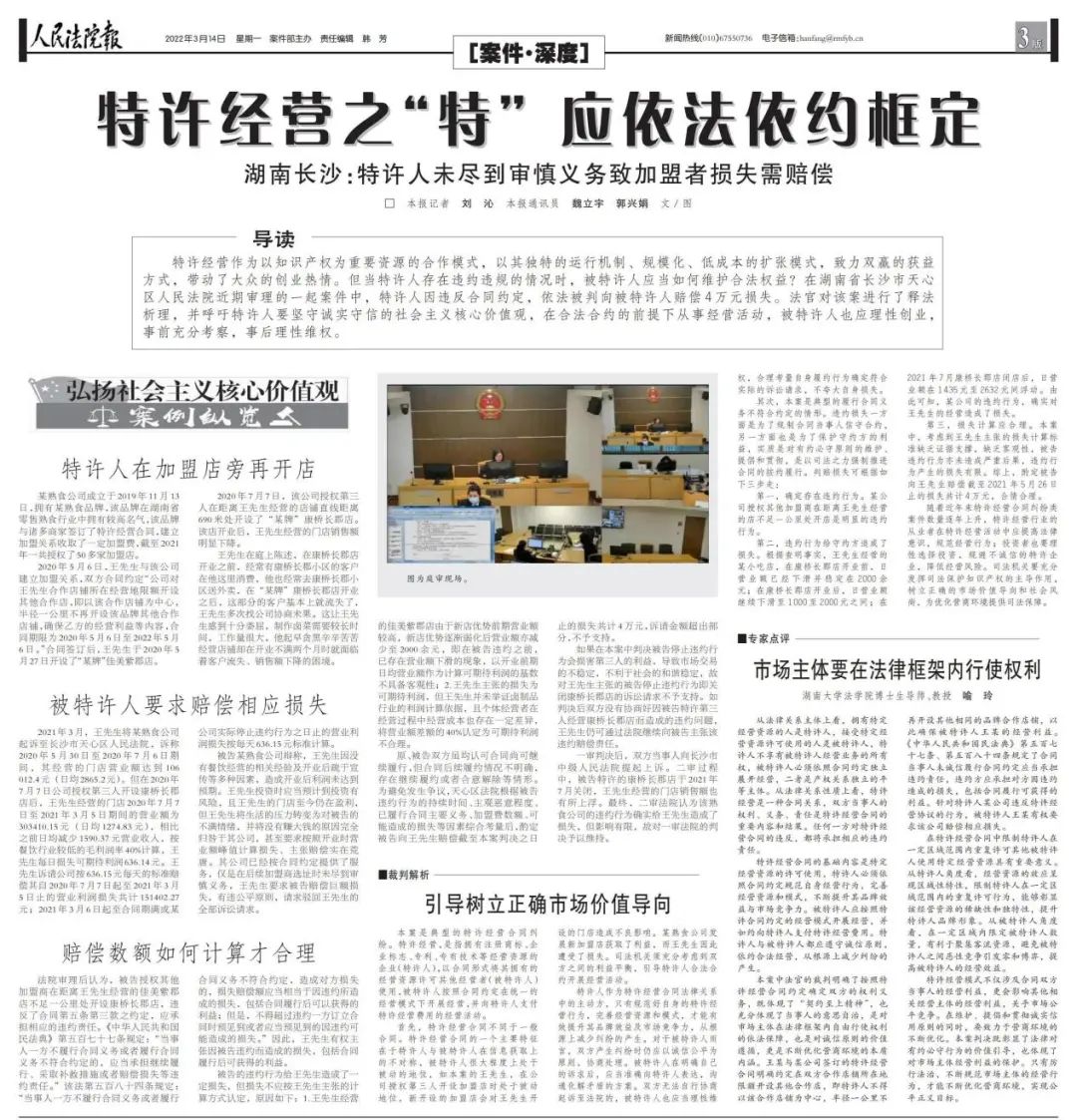 喻玲教授在《人民法院报》上,对本次案件发表专家点评文章《市场主体要在法律框架内行使权利》。