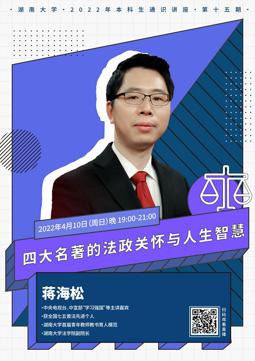 副院长蒋海松副教授以“四大名著的法政关怀和人生智慧”为主题,为大家带来了一场别开生面的法律盛宴。本次讲座由香香漫画